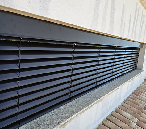 Estores de alta resistência com lâminas extrudidas e sistema anti-intrusão. Ideais para aumentar a segurança da habitação ou comércio, bloqueiam automaticamente quando fechados.